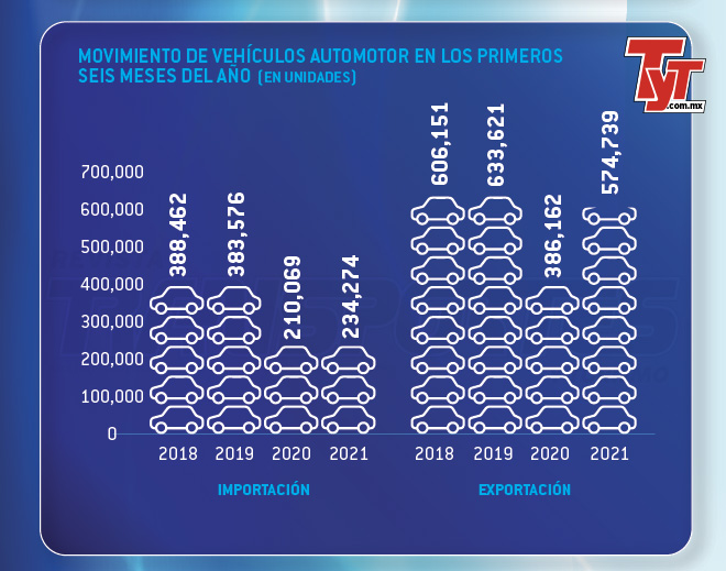 En los primeros seis meses de 2021, reporta el transporte de 809,013 vehículos, un aumento del 35.7% frente al mismo periodo de 2020; sin embargo, aún lejos de los resultados de 2018 y 2019, cuando la cifra rondaba el millón de unidades.