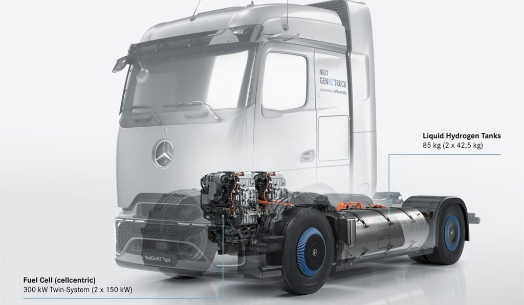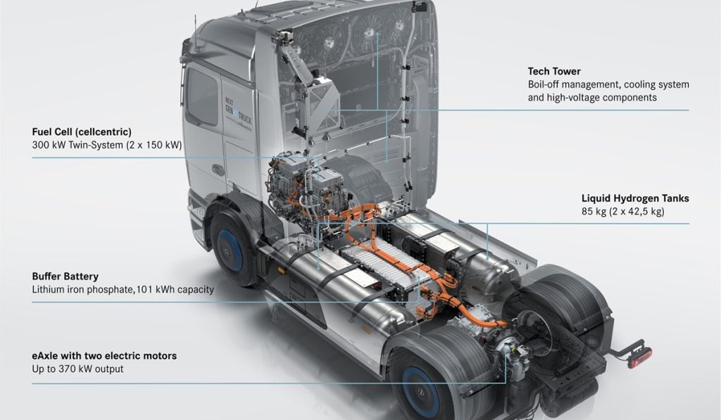 Daimler Truck destacó que, el transporte de hidrógeno líquido requiere menos esfuerzo logístico, y los tanques de hidrógeno líquido ofrecen ventajas en cuanto a costo y peso en comparación con los tanques gaseosos de alta presión. Estas ventajas permiten mayores cargas útiles, lo que permite despliegues comparables a los de los camiones diésel actuales.
