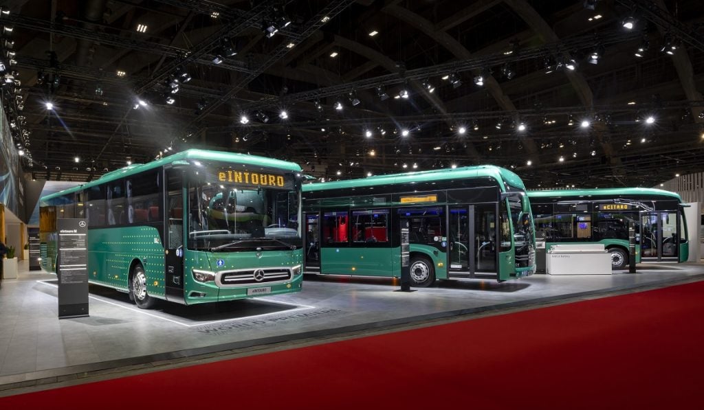 Daimler Buses reveló, en la feria Busworld Europe 2025 de Bruselas, su primer autobús interurbano eléctrico de batería, el Mercedes-Benz eIntouro, que ofrece una autonomía de hasta 500 kilómetros sin recarga intermedia.