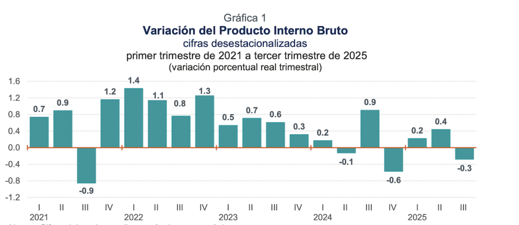 La economía mexicana registró un desempeño débil en el tercer trimestre del año, confirmando los temores de un posible estancamiento ante la incertidumbre generada por la prolongación de los aranceles de Estados Unidos.