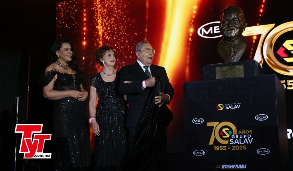 Teniendo como testigos a sus descendientes, se develó el busto de bronce del empresario, pieza que será colocada en las oficinas corporativas de Grupo SALAV como recordatorio permanente de su labor, iniciada desde la infancia cuando ayudaba a su padre en el primer taller de grasas y lubricantes.