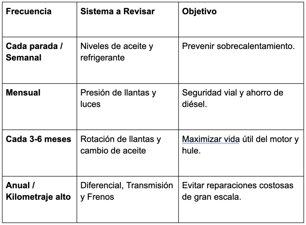 Al seguir este esquema de mantenimiento, no solo aseguras el cumplimiento de la revisión técnica vehicular, sino que garantizas que tu herramienta de trabajo sea siempre fiable, segura y económica.