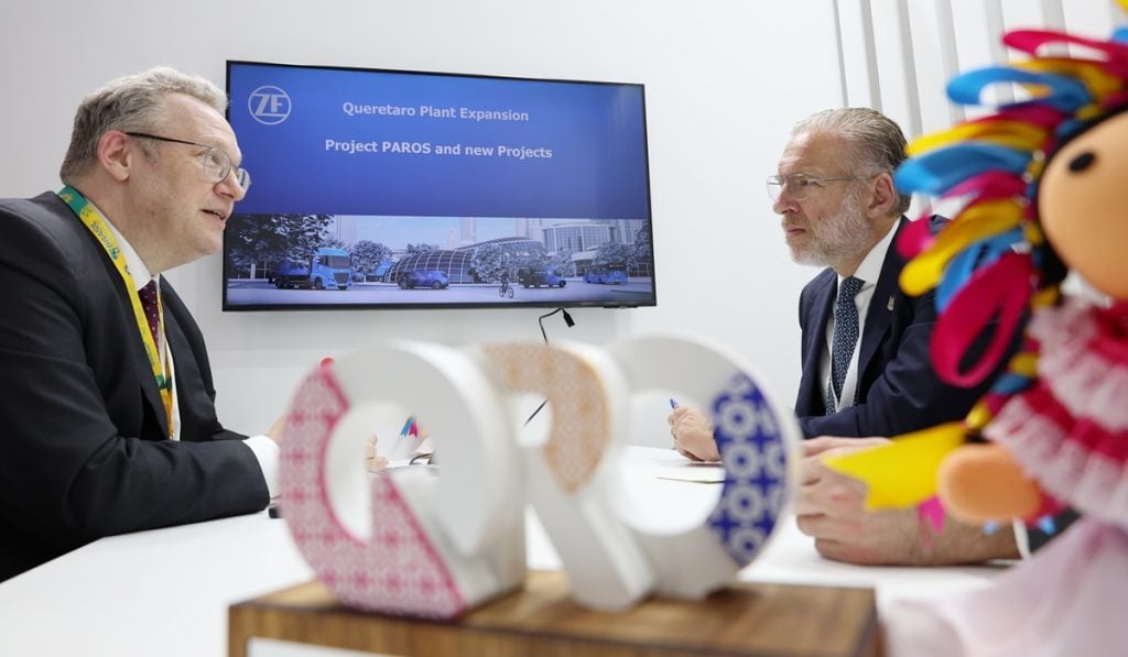 La segunda inversión anunciada desde Alemania corresponde al fabricante de componentes ZF. Marco Antonio Del Prete Tercero, sostuvo una reunión con ejecutivos de la empresa TRW de ZF Group, a fin de explorar nuevas oportunidades de colaboración, donde se anunció un proyecto, que contempla una inversión de más de 110 millones de pesos, la generación de 78 empleos y que se enfocará en el desarrollo de sistemas de dirección para vehículos de pasajeros y comerciales.