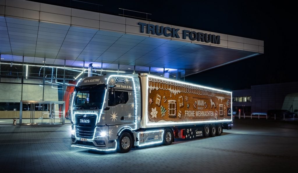 Los miembros de la junta directiva y los empleados de MAN Truck & Bus conducirán el camión navideño a jardines de infancia, escuelas e instituciones sociales, así como a las sedes de MAN en Múnich, Núremberg, Salzgitter y Wittlich hasta finales de diciembre. Con el primer camión navideño eléctrico, MAN combina tradición e innovación, y envía un mensaje contundente de sostenibilidad y compromiso social.