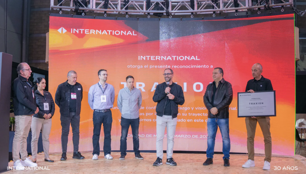 Durante la expo de este año, International también reconoció a Traxion por más de una década consecutiva de confianza en la marca y por su apuesta constante por la renovación tecnológica de su operación.