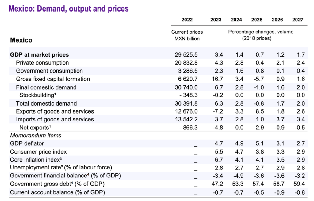 “Dada la alta exposición de México al mercado estadounidense, la desaceleración proyectada en Estados Unidos y las condiciones financieras más restrictivas podrían afectar más de lo previsto a las exportaciones y la inversión”, detalla el informe.
