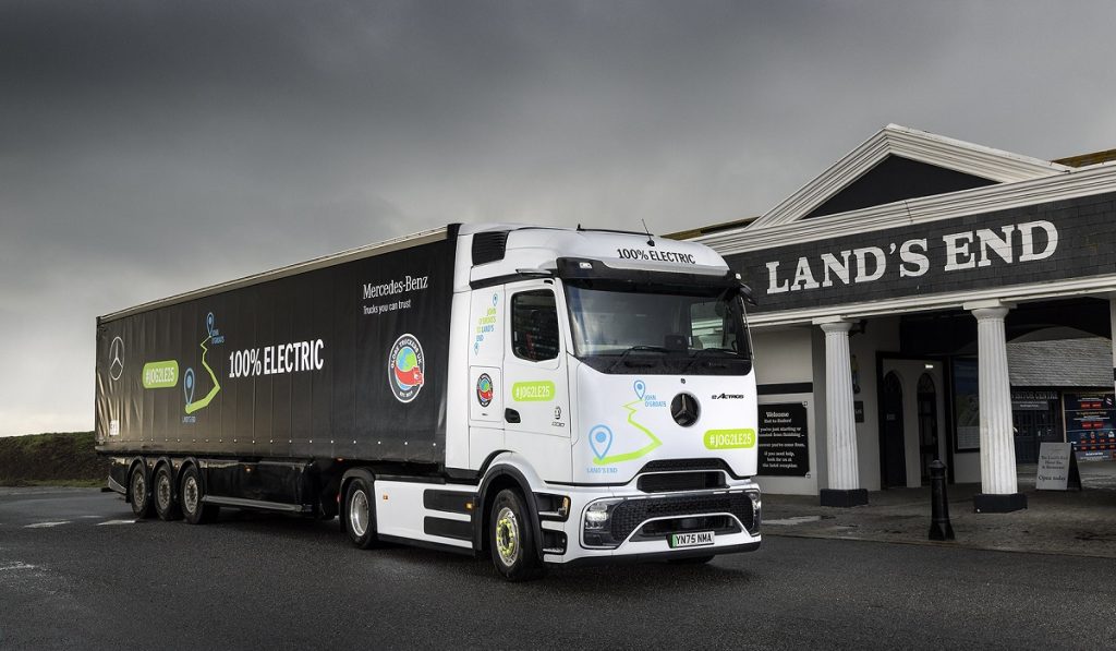 Mercedes-Benz eActros 600 estableció un récord al recorrer 1,378 km en poco más de 24 horas con solo tres paradas de recarga de energía, convirtiéndose así en el primer camión eléctrico en recorrer la distancia entre John O’Groats y Land’s End, Reino Unido.