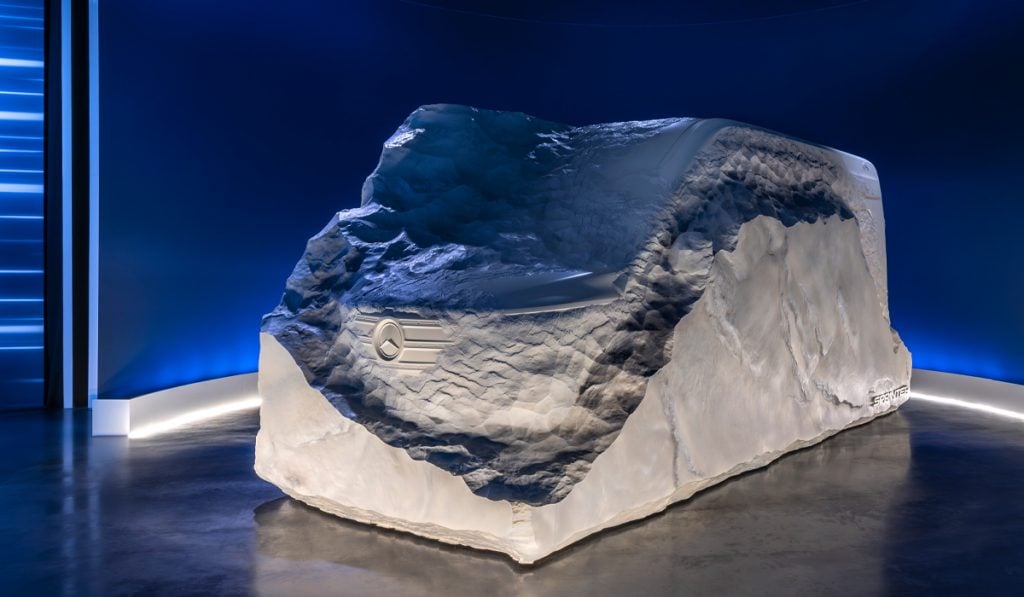 Sin duda, el momento más simbólico de nuestra visita fue justamente la presentación de “THE BOuLDER”, una escultura de seis metros de largo y casi tres de alto. Es una pieza artística y técnica a la vez: sus formas insinuaban lo que será el nuevo diseño de la Sprinter, robusto pero elegante, pensado para satisfacer la diversidad de clientes que confían en la marca.