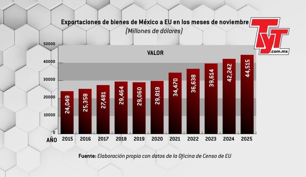 Te puede interesar: Exportaciones de México hacia EU rompen récord en octubre