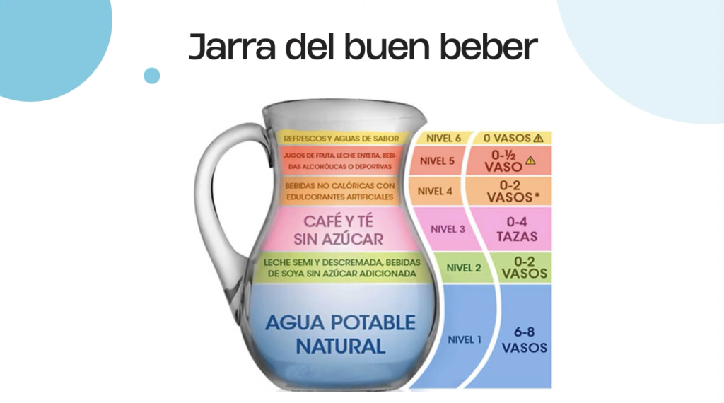 Llevar refrescos, jugos o bebidas azucaradas durante el viaje suele verse como una forma de “consentirse”; sin embargo, la nutrióloga destacó la importancia de la “Jarra del Buen Beber”, que prioriza el consumo de agua potable natural, mientras que otras bebidas deben ingerirse en menor proporción.