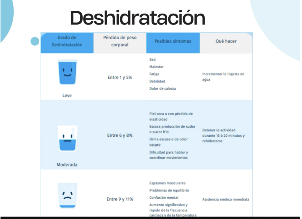 - Colocar recordatorios que ayuden a no olvidar la hidratación.
