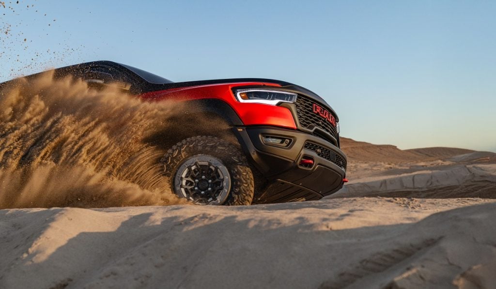 En un comunicado, Ram detalló que, el V-8 de 6.2 litros sobrealimentado canaliza su potencia a través de la transmisión automática de alta capacidad TorqueFlite de ocho velocidades y una caja de transferencia activa permanente, así como tracción total a las cuatro ruedas. Con el sistema de lanzamiento Launch Control activado, la TRX pasa de 0 a 100 km/h en solo 3.5 s y alcanza una velocidad máxima de 190 km/h.