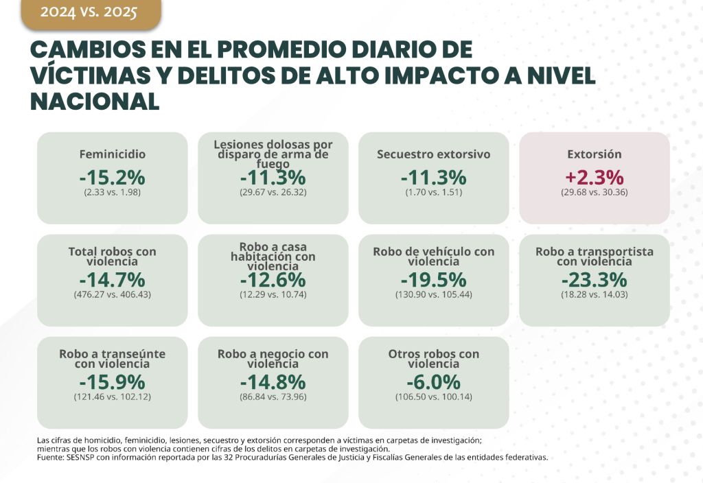 Con las cifras difundidas este martes, 2025 cerró con alrededor de 6,245 delitos contra operadores, al considerar aquellos cometidos sin violencia ; no obstante, aún está pendiente el reporte final de la Secretaría de Seguridad y Protección Ciudadana (SSPC), que será presentado a través del SESNSP.
