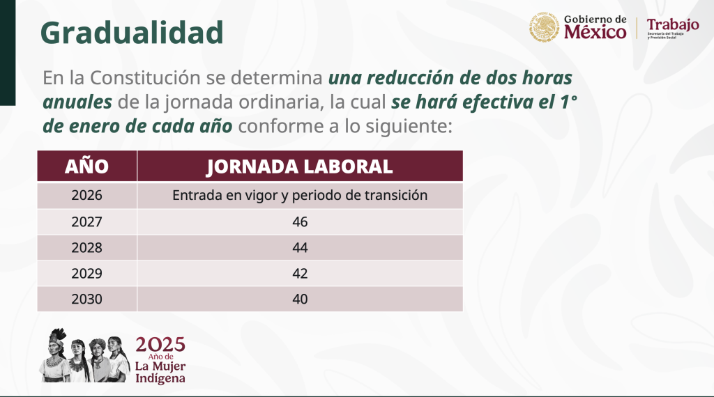 La reducción de la jornada laboral de 48 a 40 horas será gradual y se hará efectiva a partir de 2027 y se verá concretada en su totalidad en 2030.
