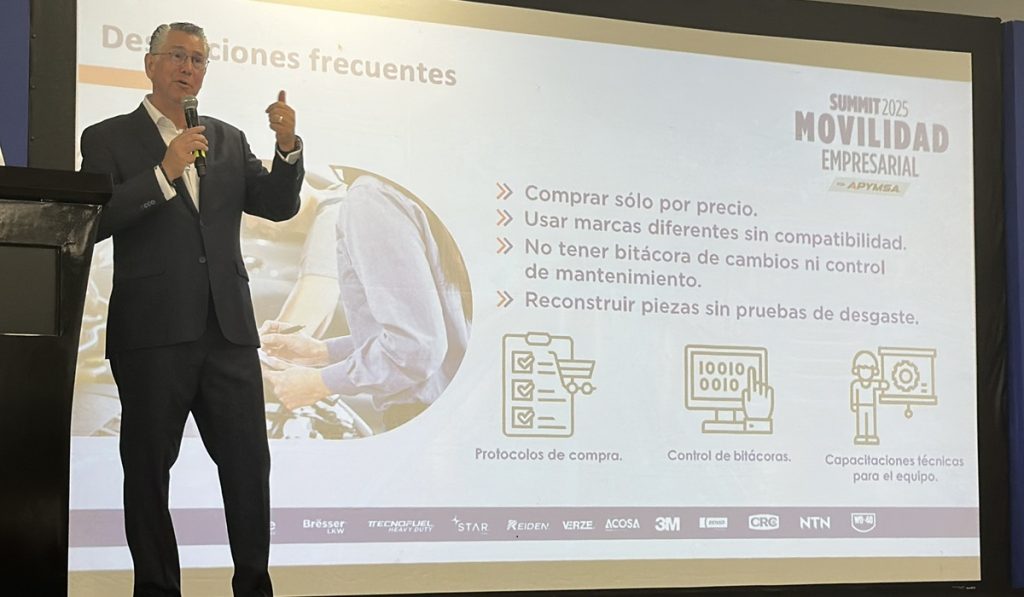 El directivo comentó que un 65% del gasto operativo de un vehículo se va directamente al mantenimiento refacciones, es decir, al mercado de repuesto (aftermarket); en ese sentido advirtió que la presión por reducir costos ha llevado a muchas flotillas a tomar decisiones que parecen generar un ahorro, pero que al final salen caras.