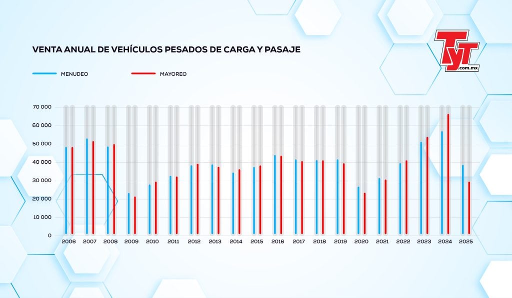 Si bien 2025 fue un año complicado para la industria de vehículos pesados, al menudeo presentó un ritmo similar al registrado entre 2012 y 2015, cuando se recuperaba de la crisis de 2009.