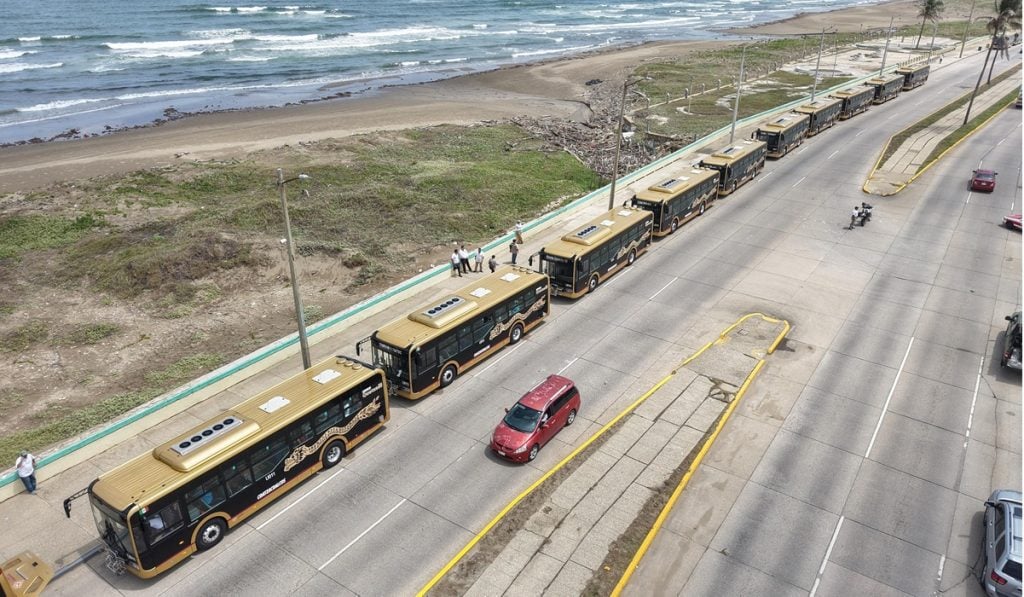 El Gobierno de Veracruz dio el banderazo de salida a 60 autobuses Yutong, que ya operan en Coatzacoalcos para mejorar la movilidad, elevar la calidad del servicio y dignificar el traslado de la población.